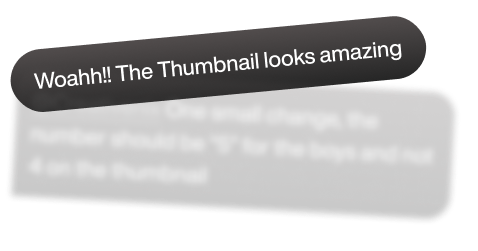 Once your thumbnail is ready, you review it and share your feedback. Need changes? No problem — revisions are unlimited. We refine the design based on your input until it looks exactly how you want. Our goal is simple: deliver a thumbnail you’re 100% confident publishing.